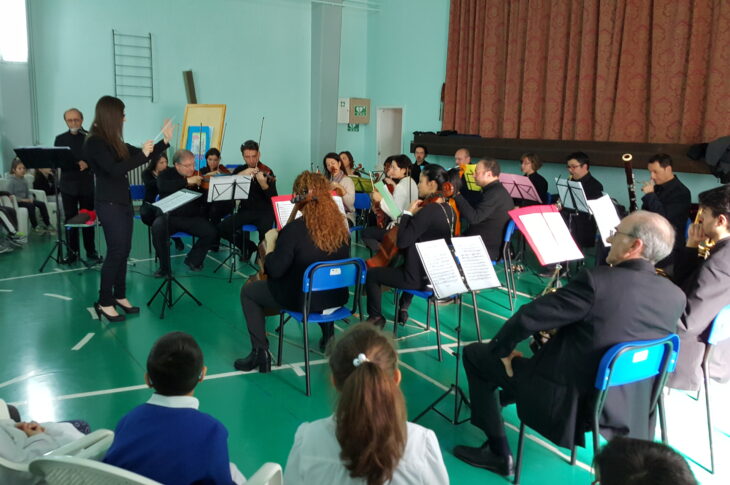 Grazie alla straordinaria competenza e alla bravura dei musicisti dell’Associazione “Amici della Musica”, i nostri alunni sono stati coinvolti in un laboratorio musicale curato dall’ins. Mariagrazia Cappelluti, propedeutico alla conoscenza e alla costruzione della fiaba musicale “Pierino e il lupo” del compositore russo Sergej Prokofiev. In seguito, sono rimasti letteralmente incantati dall’ascolto del concerto dal vivo, diretto dalla giovanissima Mimma Campanale e dalla narrazione animata del maestro Pino Barile. Tutto sapientemente coordinato dall’insegnante Nadia Zifarelli.[/vc_column_text][vc_empty_space][vc_gallery type=”image_grid” images=”4835,4837,4838,4836,4840,4841,4843,4844,4847,4848,4849,4857,4858,4859,4860,4861,4862,4863,4864,4865,4866,4867,4868,4869,4870,4871,4872″ column_number=”5″ grayscale=”no” images_space=”gallery_with_space” css=”.vc_custom_1577786001139{border-bottom-width: 5px !important;padding-bottom: 10px !important;}”][vc_empty_space][/vc_column][/vc_row]